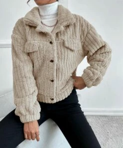 This ribbed button-up jacket provides a cushy layer on chilly days.