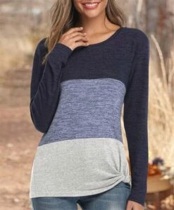 An eye-catching color block design elevates this long-sleeve boatneck top made from fabric with a hint of stretch.