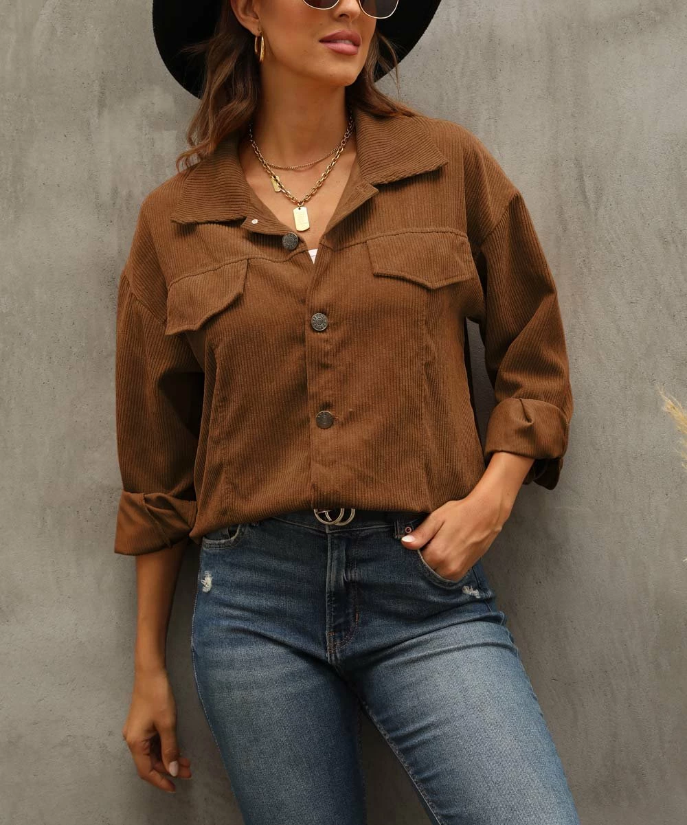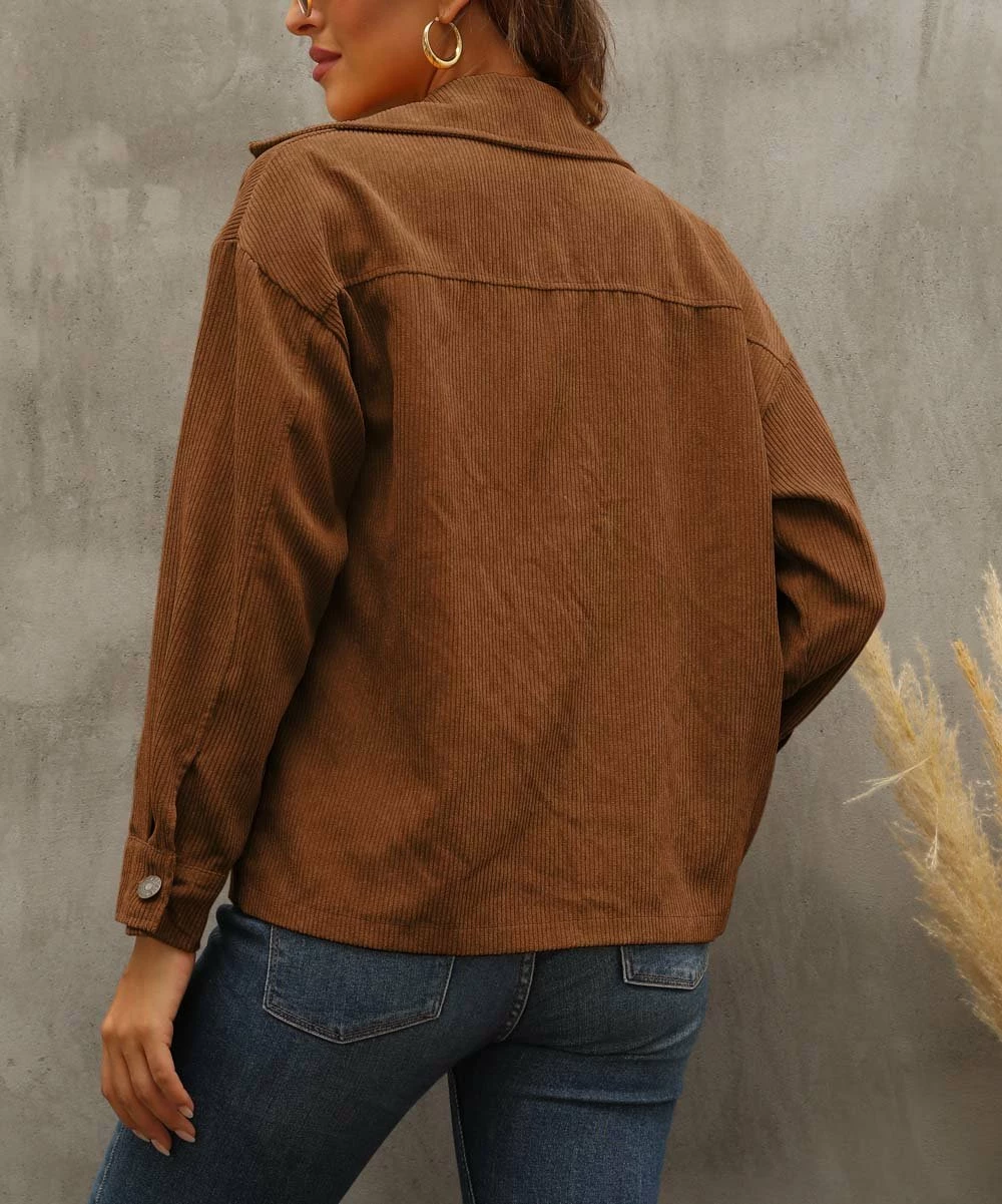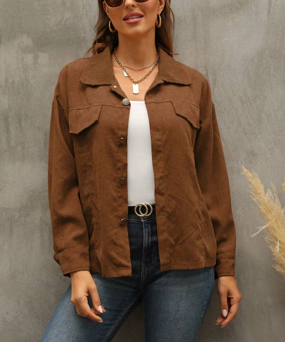 Keep the cold at bay by buttoning up this jacket made of crisp corduroy. A bal collar adds a touch of polish to the topper, and flap pockets provide a hiding place for small essentials like your lipstick and keys.