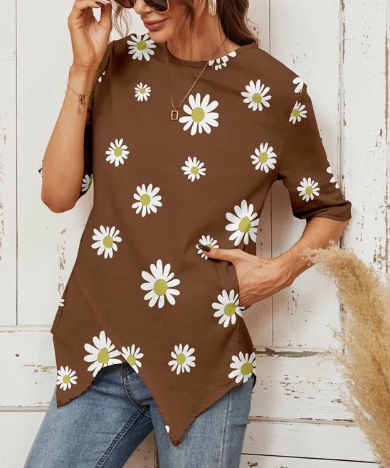 Tulip-hem top featuring soft cotton-blend fabric and elegant half-sleeves.
