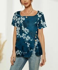 Promo πŸŽ‰ Camisa Navy Floral Button-Accent Slit-Side Boatneck Top – πŸ‘© Women πŸ₯°