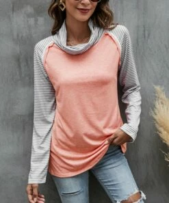 Add a classic touch to a laid-back style with this cowl-neck raglan top boasting soft cotton-blend material to keep you comfy all day long.
