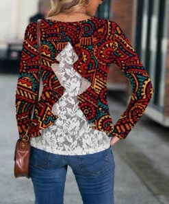 This long-sleeve tee is elevated by a lace-panel on the back and a bold geometric print.
