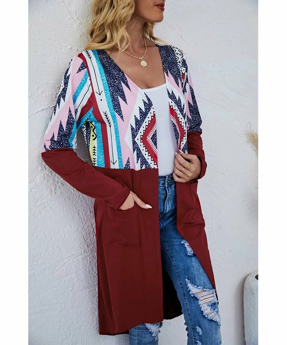 A slight hi-low hemline adds a flowy finish to this open-front cardigan featuring a trendy print and comfy knit fabric for an easy way to elevate your favorite outfits.