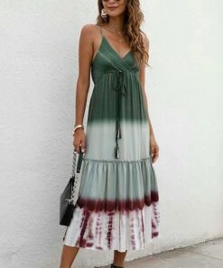 Best deal β¨ Camisa Green OmbrΓ© Tie-Dye Tie-Waist Surplice Maxi π Dress – π© Women π―